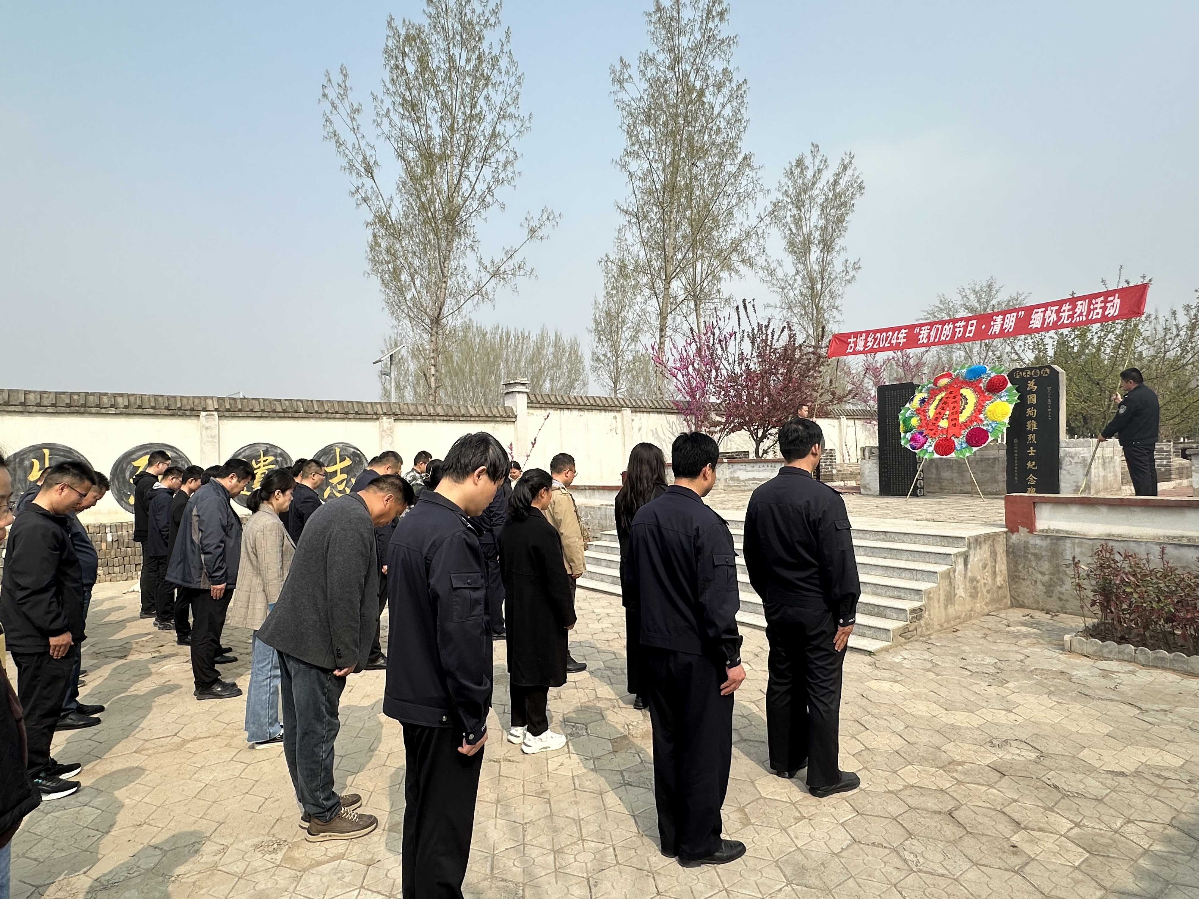 在英雄纪念碑前,全体人员身着素装,神情庄重,面向纪念碑肃立,重温入党誓词,认真回顾自己的庄严承诺。随后派出所民警代表向革命烈士敬献花圈,全体人员行鞠躬礼并默哀三分钟,缅怀革命先烈的丰功伟绩,寄托无限哀思。活动最后古城乡党委书记整理挽联并现场讲授党课,使现场的全体干部职工受到了一次深刻的党性教育。通过讲述先烈的英勇事迹,激发了党员干部面对困难和挑战的勇气和决心,干事创业的责任与担当。