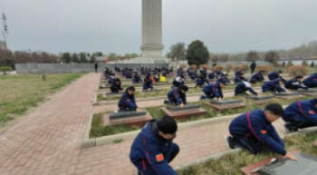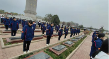 4月3日上午实中部分师生在党支部书记、校长周彦伟及副校长由龙涛的带领下,到清丰县烈士陵园缅怀英烈。