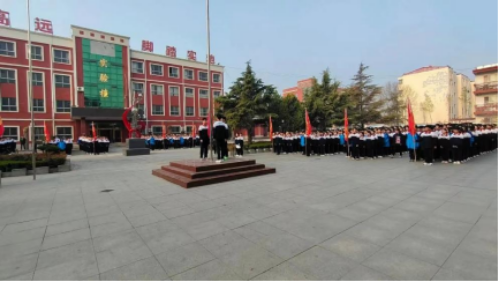 4月1日(星期一)的早晨,旭日东升,空气清新,实中三个年级54个教学班齐聚行知广场,举行了庄重严肃的升国旗仪式。党支部书记、校长周彦伟同志号召实中学子发奋学习,以实际行动缅怀先烈。校团委书记彭丽娜启动了“网上祭英烈”活动,号召同学们趁清明节当日假期,网上给革命先烈敬礼、献花等。