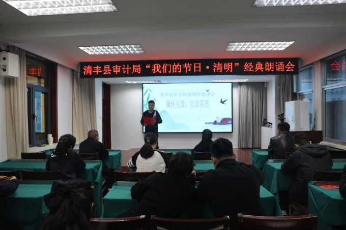 三是举办一场经典诵读。组织开展以清明节为主题的中华经典诵读活动,全体审计干部踊跃报名,积极排练,诵读活动中,7名审计干部通过情意绵绵的诗句、悠扬婉转的散文等形式,在真情流露中生动诠释着中华经典的魅力,让审计干部在一场视听盛宴中感悟清明文化,点燃爱国情怀。