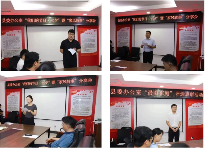 为深入贯彻落实习近平总书记关于注重家庭家教家风建设的重要论述精神,持续弘扬中华民族优秀传统文化,传承良好家风家训,8月9日,清丰县委办举办2024年“我们的节日•七夕”暨“家风故事”分享会。县委办分管日常工作的副主任潘剑勇出席活动,办公室全体干部职工参加。