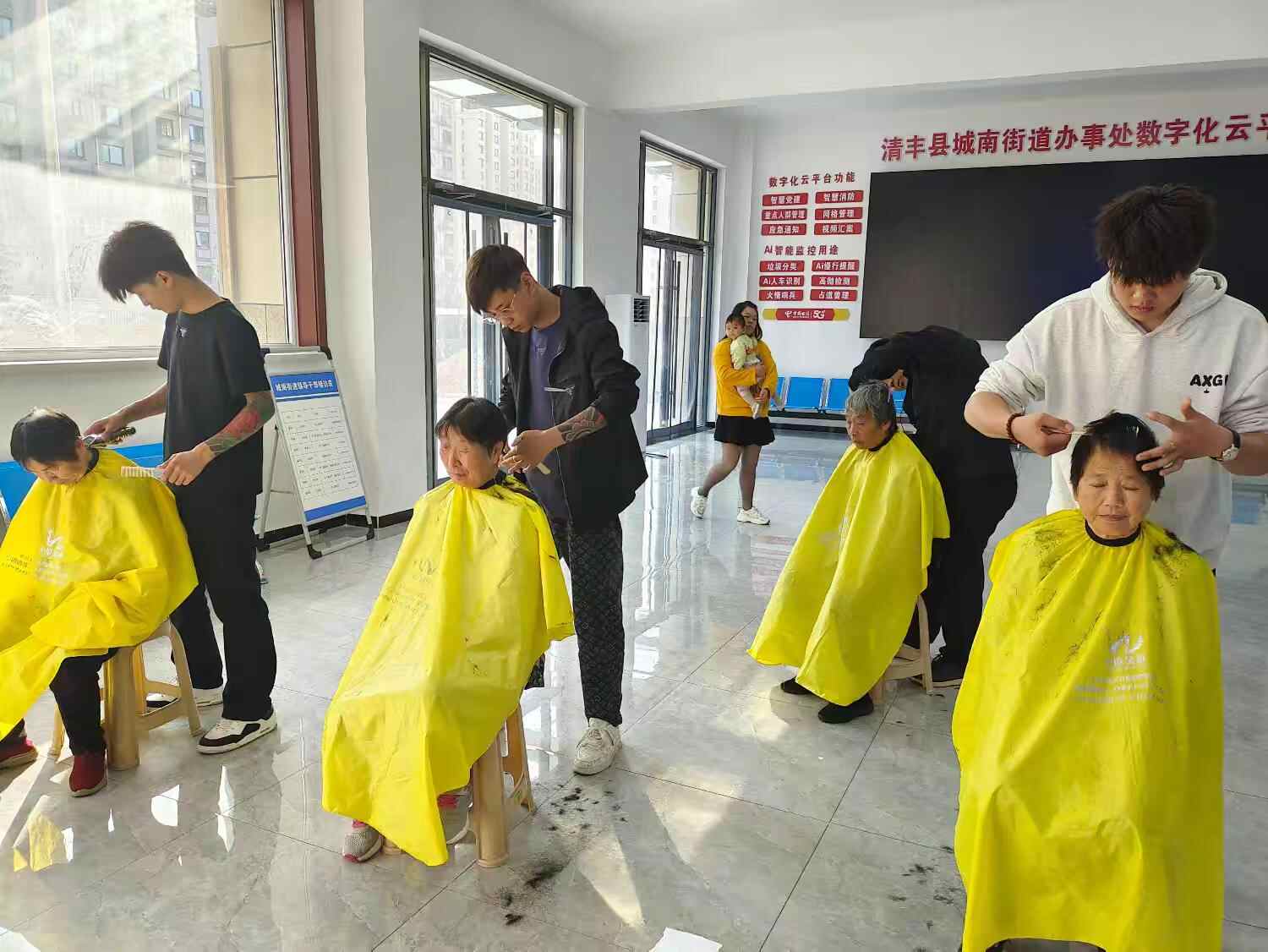 活动现场,社区工作人员和党员志愿者们早早地布置好了场地,摆放好座椅,准备好理发工具,等待着老人们的到来。爱心理发师们耐心地询问老人的需求,根据他们的喜好和要求,精心为他们设计发型,老人们的脸上洋溢着期待的笑容。