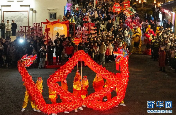 1月24日,民俗舞龙队伍在安徽省黄山市屯溪河街表演。当日,一场热闹非凡的民俗巡游踩街活动在安徽省黄山市屯溪河街精彩上演,屯溪布龙、瞻淇鱼灯等徽州民俗轮番登场,吸引众多市民游客围观,在欢声笑语中感受浓浓年味。新华网发(施亚磊 摄)在这中华民族一年之中最盛大的节日里,在举国上下热腾腾、乐融融的喜庆氛围里,笔记君送上最诚挚最美好的祝福,惟愿: