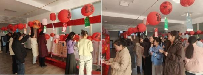 活动现场布置得温馨而喜庆,一串串红灯笼高高挂起,五彩斑斓的灯笼下悬挂着各式各样的灯谜卡片。谜语内容丰富多彩,涵盖传统文化、常见成语、生活常识、趣味谐音等,既考验智慧又富有趣味。活动开始,局领导与干部职工打成一片,一起猜谜互动。大家热情高涨,穿梭在灯笼之间,或独自凝神思考,或三五成群讨论,不时传来猜中谜语的喝彩声和掌声,现场欢声笑语不断。