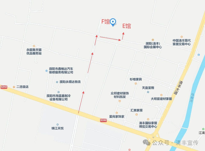 2.报名人员车辆,需从342国道向北沿会展中心西侧道路驶入,到达F馆前向东到达E馆,按规定停放。