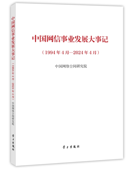 近日,中国网络空间研究院编写的《中国网信事业发展大事记(1994年4月—2024年4月)》(以下简称《大事记》),由学习出版社出版发行。