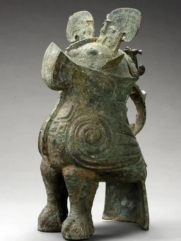这件四足觥牛、鸮合一的造型充满想象的张力,瑰伟奇丽,是古代青铜器中组合型动物的典型代表。