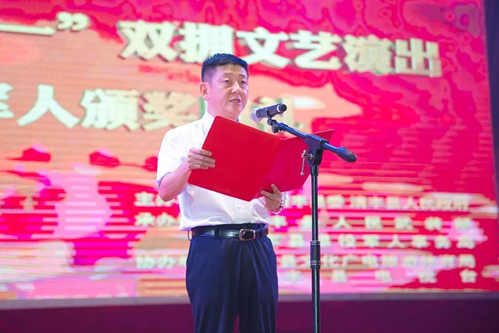 县委副书记潘奇峰在晚会上致辞。潘奇峰表示,长期以来,驻清部队指战员、武警消防官兵充分发扬人民军队的优良作风和光荣传统,全力支持、参与地方经济社会建设,充分展示了人民解放军威武之师、文明之师的光辉形象。全县广大退役军人光阴流转始终不改军人信念,角色变换始终不褪军人本色,积极服务清丰发展,踊跃投身“双拥”创建,充分展示了当代革命军人不屈不挠、奋勇争先的豪情壮志,展示了新时期退役军人崇高的精神境界和良好的精神风貌。