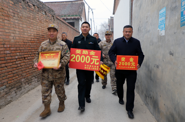 爱国奉献在军营,立功喜报传家乡。1月31日,清丰县人武部、县退役军人事务局与部队专程赶来的同志,为三等功臣王亚辉家属送上喜报和慰问金,把满满荣誉感送到军人家中,让现役军人安心、让军属暖心,不断提升军人军属获得感、幸福感、荣誉感。