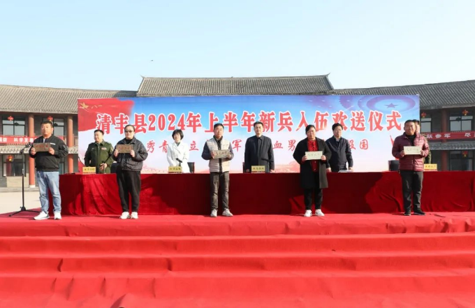 3月15日,河南省清丰县隆重举行2024年上半年新兵入伍欢送仪式。县委书记、县人武部党委第一书记高尚功出席仪式并致辞,军地领导赵勋强、程春艳、赵汝洪等出席,新兵及家属、接兵干部约300余人参加仪式,县人武部上校政委李显明主持。