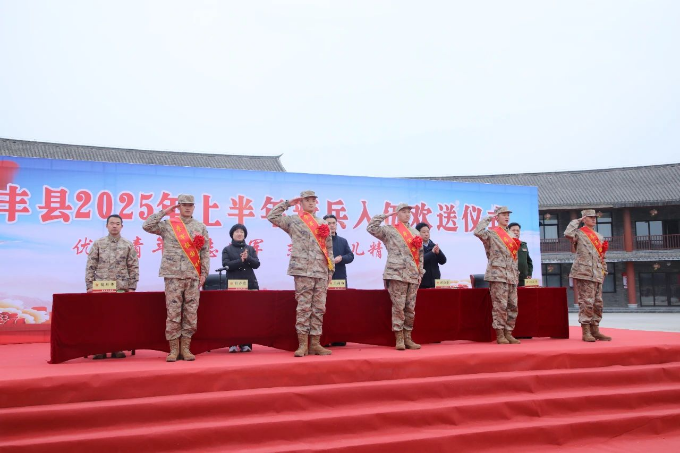 3月15日上午,清丰县2025年上半年新兵入伍欢送仪式在县民兵训练基地举行。县委书记、县人武部党委第一书记高尚功,县委常委、县委办公室主任赵勋强,县委常委、常务副县长程春艳,县委常委、县人武部部长赵汝洪,县人武部副部长戴丹华出席活动。县委宣传部、退役军人事务局等县直单位负责人、各乡(镇、街道)党(工)委书记、专武干部、入伍新兵、新兵家长共计287人参加。