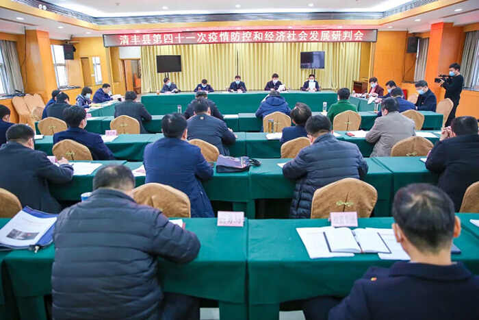 3月5日,清丰县召开第四十一次疫情防控和经济社会发展研判会。县委书记冯向军,县委副书记、县长刘兵,县委副书记潘奇峰,县人大常委会主任杨理宏,县政协主席戚士杰等出席会议,县直有关部门负责人参加会议。