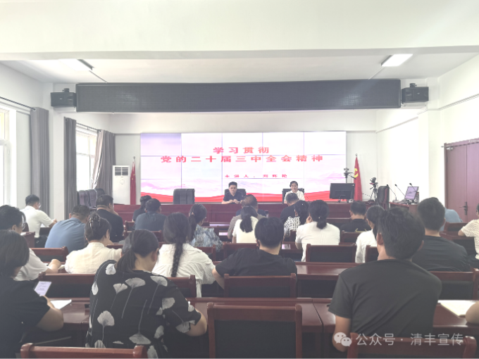 8月22日,县委宣讲团在城南街道办三楼会议室举行学习贯彻党的二十届三中全会精神宣讲报告会。街道办机关全体、各村支部书记、乡村首席服务员共计60余人参会。