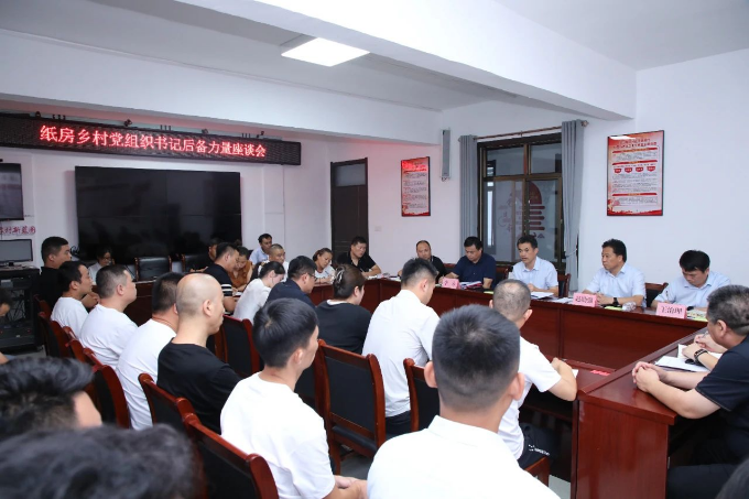 在什子外村党群服务中心,高尚功与纸房乡后备力量人员进行集体座谈。