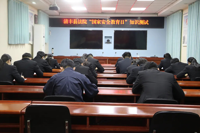 在第5个“全民国家安全教育日”到来之际,为推动国家安全宣传教育工作深入开展,增强法院干警国家安全意识,营造“国家安全,人人有责”的良好氛围,4月14日下午,清丰县法院组织50余名干警进行国家安全教育专项知识测试。