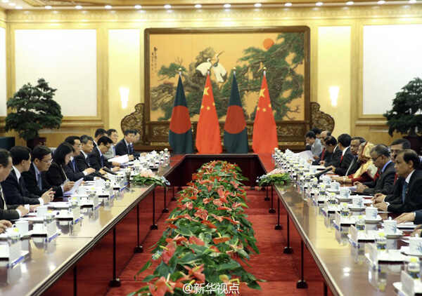 新华网北京6月9日电 据新华社“新华视点”微博报道,9日下午,国务院总理李克强在人民大会堂同孟加拉国总理哈西娜举行会谈。两国总理一致同意进一步深化中孟全面合作伙伴关系,提升中国同南亚国家合作水平,共同维护本地区的和平、稳定与发展。