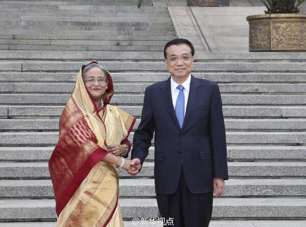 新华网北京6月9日电 据新华社“新华视点”微博报道,9日下午,国务院总理李克强在人民大会堂东门外广场举行仪式,欢迎来华进行正式访问的孟加拉国总理谢赫·哈西娜。