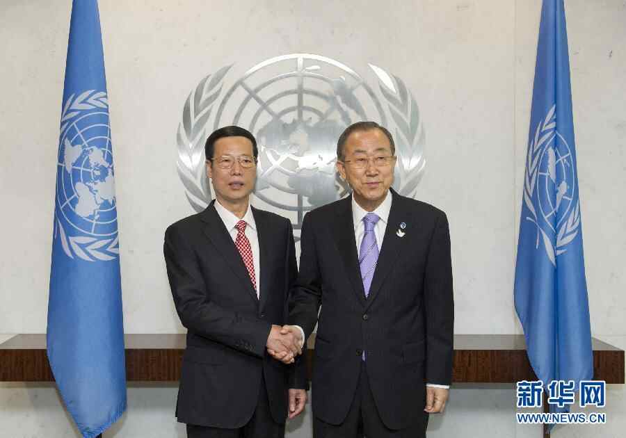 张高丽首先向潘基文转达习近平主席、李克强总理的亲切问候,并转交了习近平主席致潘基文的信。张高丽说,中方高度赞赏潘基文秘书长倡议召开联合国气候峰会,相信峰会将对应对气候变化国际合作产生重要和积极影响。中国政府和中国领导人高度重视应对气候变化问题,高度重视联合国在此方面的作用。中方愿继续加强与联合国的合作,将提供600万美元支持联合国秘书长推动应对气候变化的南南合作。