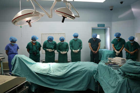 手术开始前,医护人员向刘文萍默哀。(图/邱丽芳摄,转自新华网云南频道)