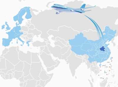 此外,航线流域也正在日益加宽,在中国版图上已延伸到北京、上海、天津、吉林、浙江、江苏、福建、广东以及香港、台湾等15个省市地区的30多个大中城市,覆盖大半个中国的物流贸易区域。放眼世界范围,出发地和目的地包括卢森堡、德国、英国、法国、意大利、芬兰、比利时等主要欧洲国家的重要区域。