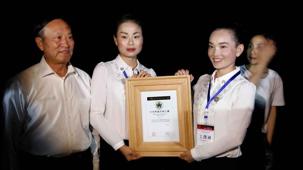 火炬徒步二十四道拐活动,因人数之多、规模之大,创上海大世界基尼斯纪录,上海大世界基尼斯总部理事会理事杨玉婷现场为晴隆二十四道拐颁证。吴东俊/CFP