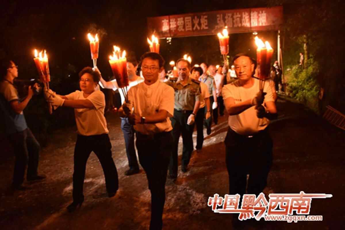 4日晚,晴隆县举办了主题为“高举爱国火炬,弘扬抗战精神”的千人火炬徒步二十四道拐活动。70个来自社会各界的方队(代表中国人民抗战胜利70年)2974名群众(抗战天数)用脚丈量二十四道拐,用2974支火炬照亮这道改写了中国抗日战争进程和世界反法西斯战争格局的“抗战生命线”。图片来自:中国黔西南