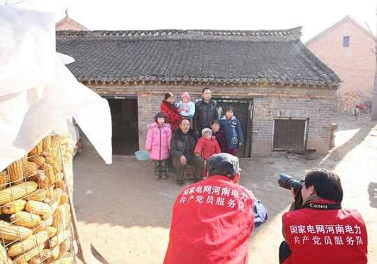 2016年2月18日,志愿者为濮阳县渠村乡刘海村留守儿童拍摄全家福。