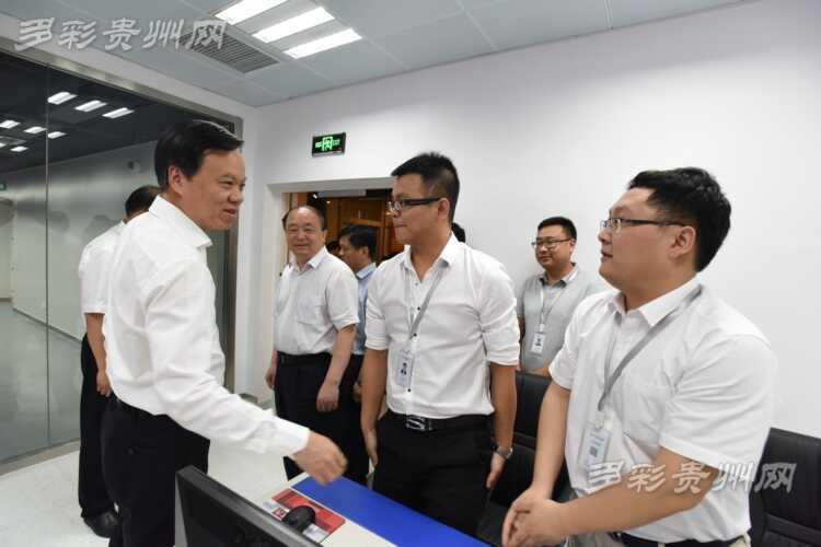 在多彩贵州网IDC机房,贵州省委书记陈敏尔一行听取网站技术架构建设情况汇报