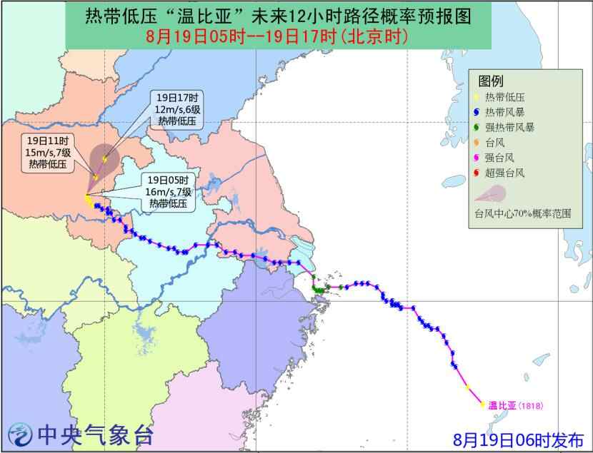 根据最新气象资料,热带低压“温比亚”的中心19日05时位于河南汝南境内,预计该低压中心将以每小时10公里左右的速度向北偏东方向移动,强度逐渐减弱。受其外围云系影响,我市今天白天降水稳定持续。