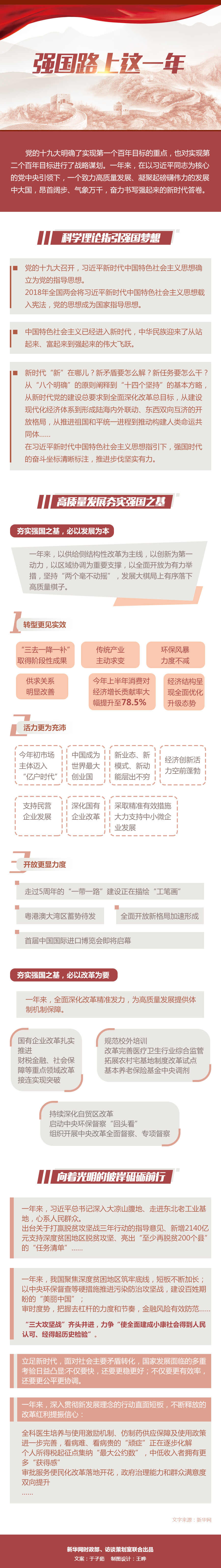 一年来,在以习近平同志为核心的党中央引领下,一个致力高质量发展、凝聚起磅礴伟力的发展中大国,昂首阔步、气象万千,奋力书写强起来的新时代答卷。