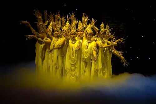 2019年4月23日晚,大型室内情景体验剧《又见敦煌》在甘肃省敦煌市上演。(新华社记者 范培珅 摄)