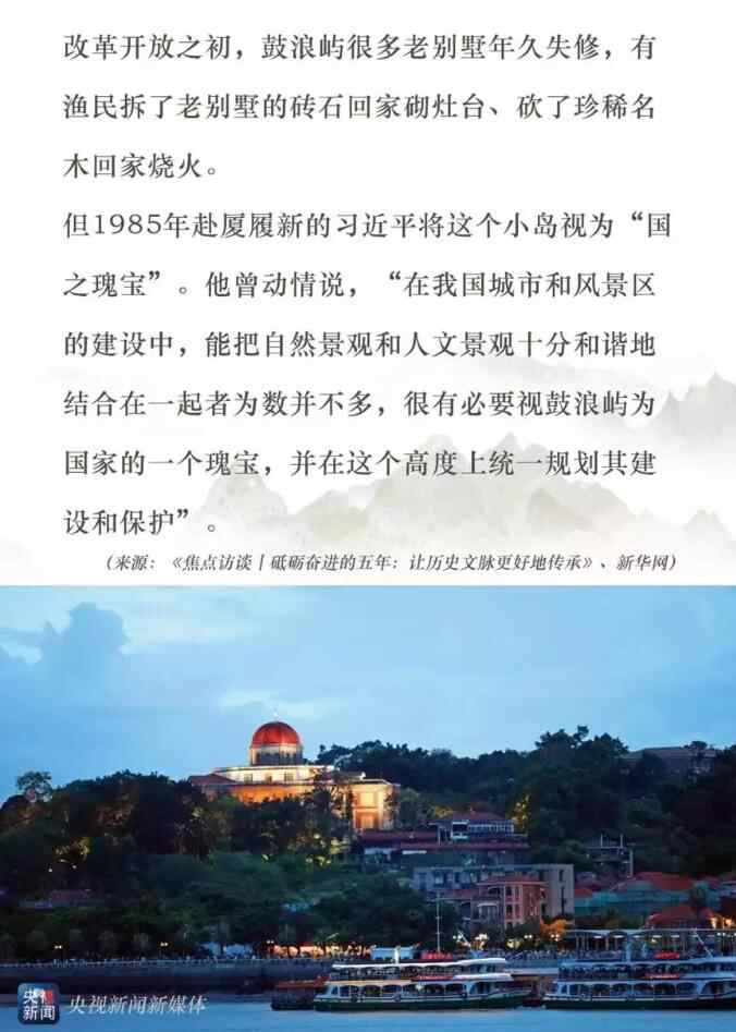 在福建,有一处文化瑰宝也曾被习近平重点保护,它就是2017年7月8日被列入世界文化遗产名录的鼓浪屿。