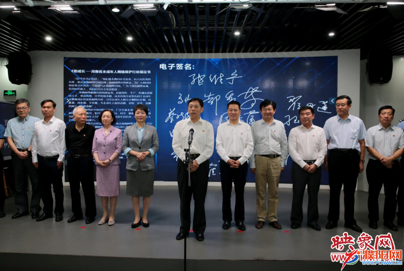 省妇联党组书记、主席郜秀菊同志宣读了《“E助成长”河南省未成年人网络保护行动倡议书》,省人大常委会副主任张维宁及相关单位参会领导在显示屏上共同签署电子签名。倡议大家要争做网络健康内容的建设者、网络科学使用的引领者、网络合法权益的保护者、创新创造活动的支持者。