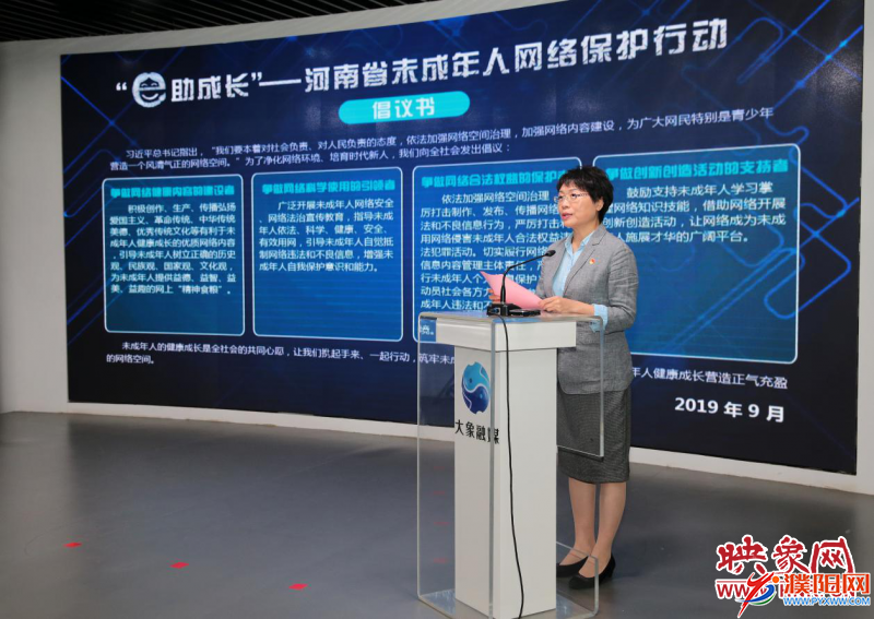 省妇联党组书记、主席郜秀菊在启动仪式上宣读了《“E助成长”河南省未成年人网络保护行动倡议书》