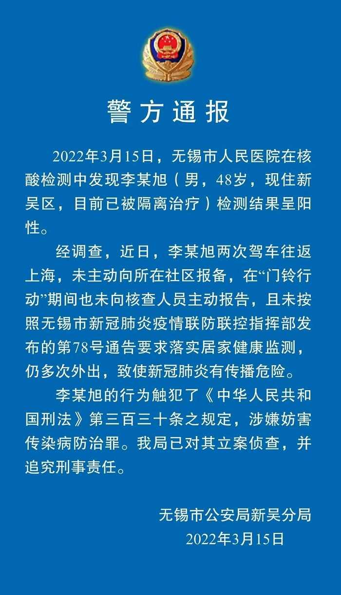 3月19日,哈尔滨市公安局发布警情通报,对故意隐瞒行程及接触史的新冠肺炎感染者张某立案侦查。