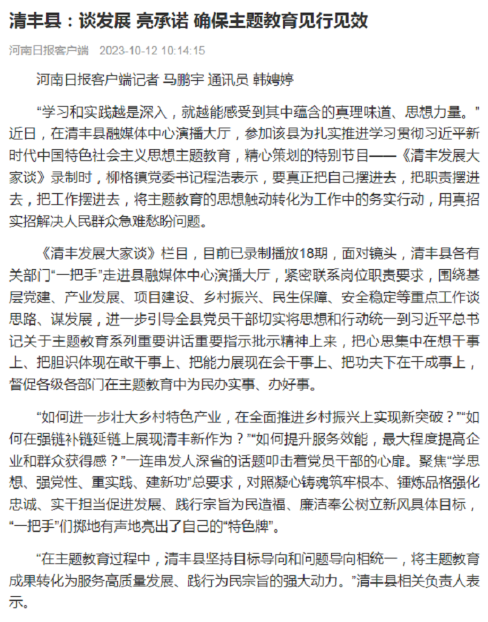 清丰县:谈发展 亮承诺 确保主题教育见行见效