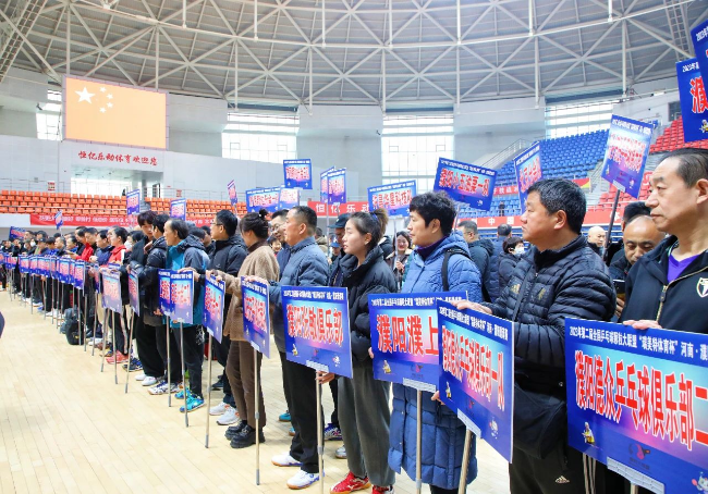 市老年人体育协会主席李朝聘出席开幕式并宣布:第二届全国乒乓球颗粒大联盟河南濮阳邀请赛开幕!
