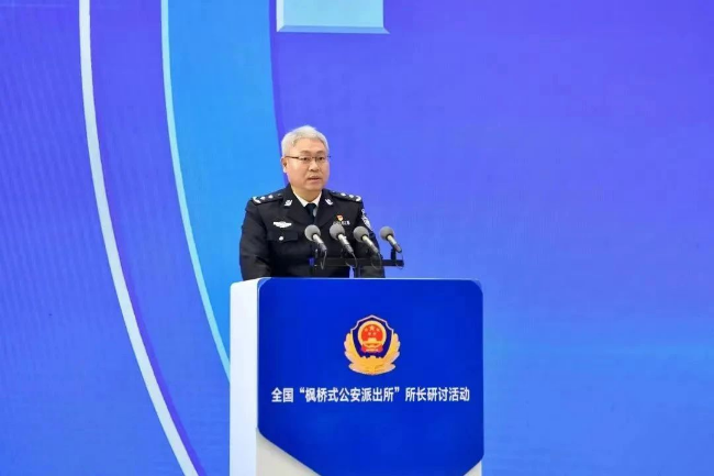 在经验交流发言汇报中,张鋆以“创新‘融合警务’打造基层治理新‘枫’景为题”,讲述了马庄桥派出所全面发展新时代“枫桥经验”,牢固树立“派出所主防”理念,以“四丰富两提升”为指引,实施“一村(格)一警”战略工作部署,积极探索主动警务、预防警务,创新“三大警务”融合,打造“1+1+N”调解工作模式,首创“亮灯守护”巡防活动,不断开拓派出所主防工作新质效。