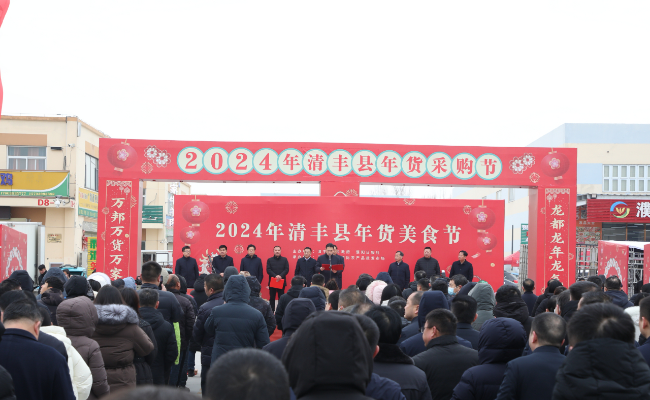1月19日,2024年清丰县年货美食节举行启动仪式。市委常委、宣传部部长张锦印,县委书记高尚功,濮阳日报社党委书记、社长吉子文,市商务局副局长葛广平以及县领导赵勋强、薛全奎、王相俊、武俭阔等出席仪式。县直有关部门、各乡镇主要负责同志及电商企业负责人和网红达人共计100余人参加活动。