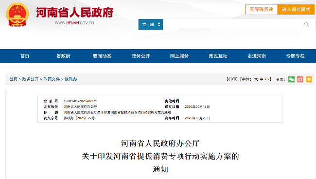 河南省提振消费专项行动实施方案