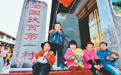 几名小朋友在福建省宁德市赤溪村村头玩耍。
