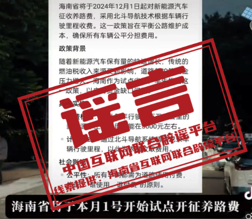 谣 言 海南12月1日起对新能源汽车征收养路费?