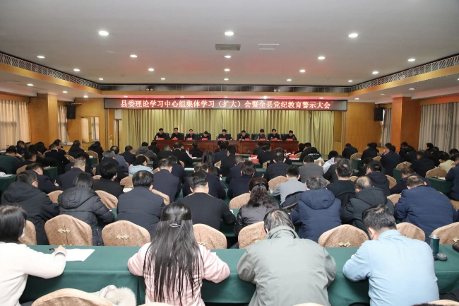 12月24日,县委理论学习中心组集体学习(扩大)会暨全县党纪教育警示大会召开。县委书记高尚功出席会议并讲话。县委副书记、县长赵丹主持会议。潘奇峰、戚士杰等在家的县级领导干部参加会议。部分县直单位主要负责同志、各乡(镇、办)党(工)委书记列席会议。