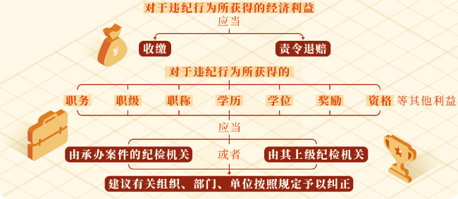 对于违纪行为所获得的职务、职级、职称、学历、学位、奖励、资格等其他利益,应当由承办案件的纪检机关或者由其上级纪检机关建议有关组织、部门、单位按照规定予以纠正。
