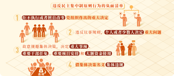 《中国共产党纪律处分条例》第七十七条对违反民主集中制原则的行为作出处分规定。可分为四类: