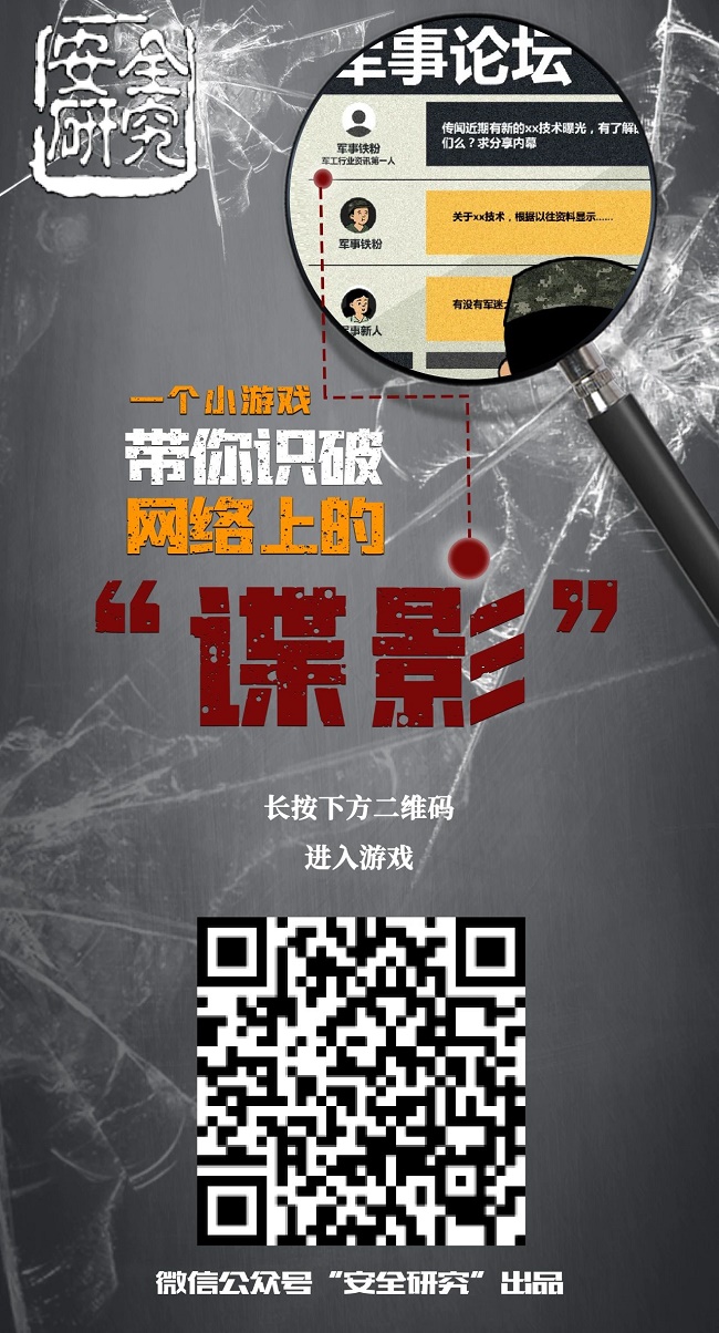 在日常生活中,我们会遇到各种各样、形形色色的人,间谍有可能就隐藏其中,如果不提高警惕,一些不经意的举动,可能就给了间谍可乘之机。今天,一起做个小游戏,看看你能否识破这些网络上的“谍影”。