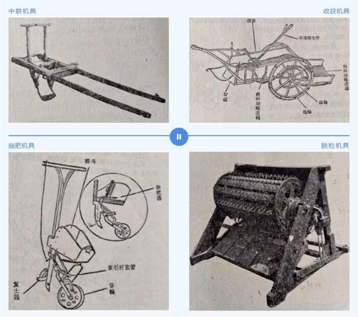 《农具图谱》第二卷主要介绍了中耕机具、施肥机具、收获机具、脱粒机具,详细记载了农机具的产地、用途、构造、规格性能、使用方法。