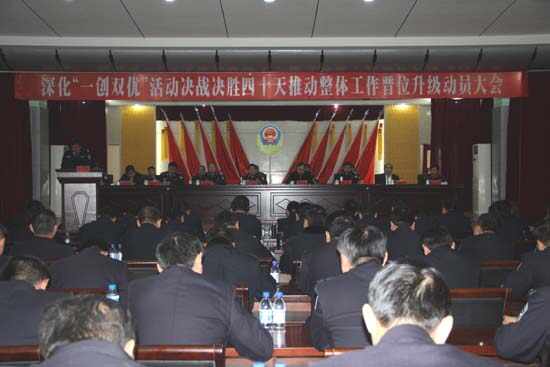 本网讯 11月24日上午,公安局在瓦屋头镇召开深化“一创双优”活动决战决胜40天推动整体工作晋位升级动员大会,动员部署深入学习十八大精神,深化“一创双优”活动,动员全县公安机关找标杆,学先进,促赶超,强力推进各项工作,确保年初既定目标顺利实现。县局班子成员、局属各单位主要负责人、教(指)导员、支部书记参加了会议。瓦屋头镇党委书记李宇峰、镇长申永杰、市局宣传科长武德龙及省、市、县主流媒体记者、百度吧吧主受邀参加了会议。会议由副局长袁克俭主持。