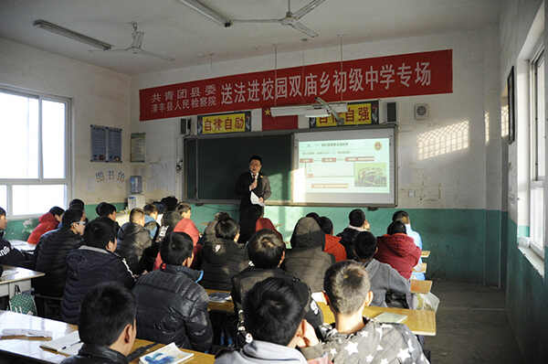 11月29日,该院公诉局和职务犯罪预防局联合来到双庙乡中学,为60多名重点教育对象,开办了一场别开生面的法制讲座。团县委副书记徐洋和校领导,参加了宣讲活动。