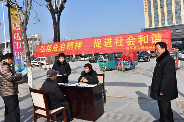 12月4日,是我国第四个国家宪法日,清丰县检察院积极贯彻党的十九大“提高全民族法治素养和道德素养”的要求,开展“弘扬法治精神 促进社会和谐”主题法制宣传活动。